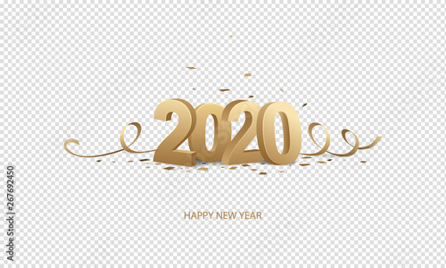 Happy New Year 2020 Gold 3d Number Isolated White Transparent