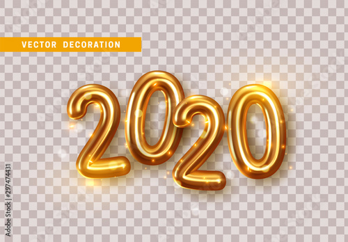 2020 Number Of Gold Foiled Balloons Isolated On Transparent