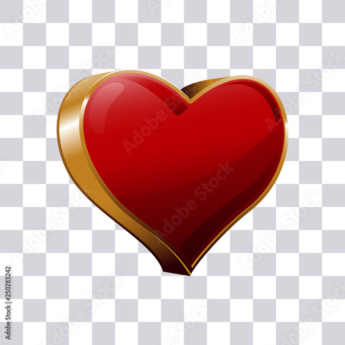 Vector Illustration Of Bright Red 3d Heart Isolated On Transparent