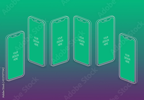 6 Wireframe Smartphones Screen Mockups With Transparent Background
