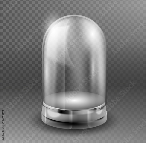 Empty Clear Glass Cylinder Showcase Dome Isolated On Transparent