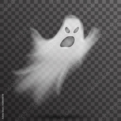 Angry Halloween White Scary Ghost Isolated Template Transparent