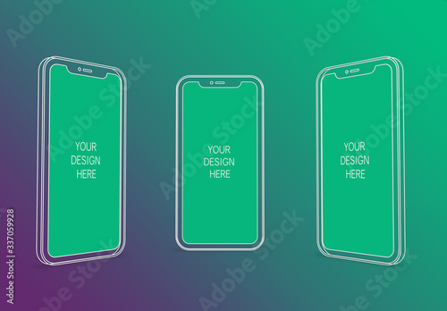 3 Wireframe Smartphones Screen Mockups With Transparent Background