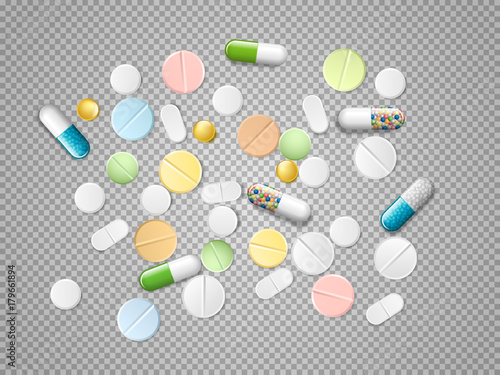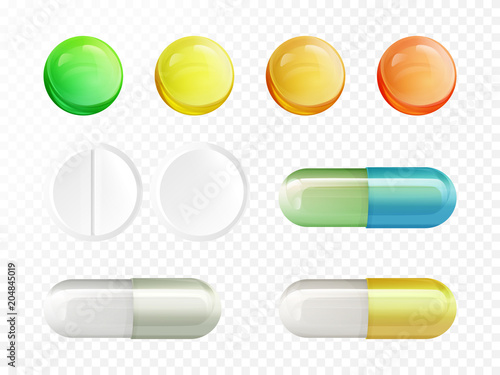 Set Of Vector Realistic Pills And Capsules On Transparent