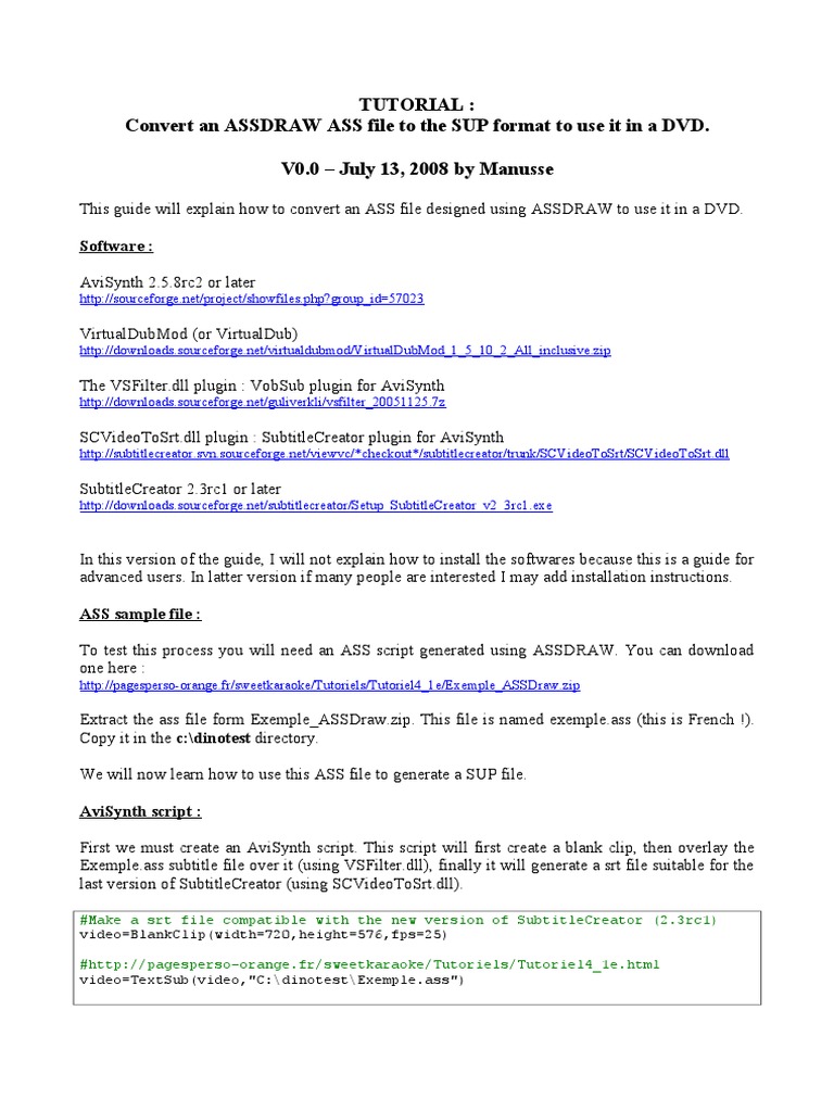 Tutorial Convert An Assdraw Ass File To The Sup Format To Use It