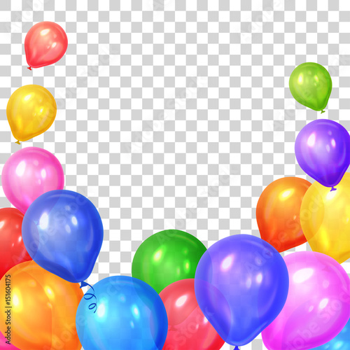 Border Of Realistic Colorful Helium Balloons Isolated On