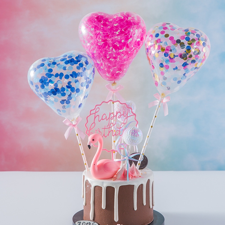 Birthday Cake Sequins Balloon Transparent Heart Shaped Sequins