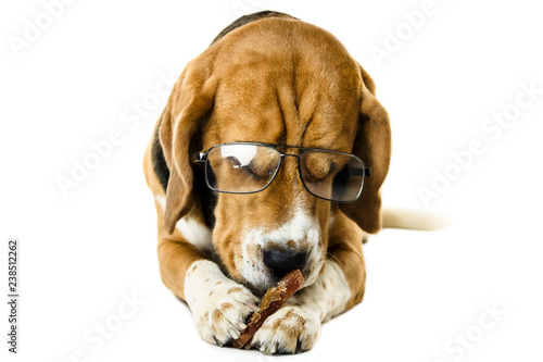 Funny Dog Beagle Transparent Glasses White Background Stock