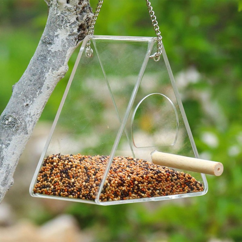 Acrylic Automatic Bird Seed Feeder Transparent Wall Mounted Pet Feeding Device Removable Tray Outdoor Three Grid Food Container Allpetapparel Your One Stop Apparel Shop For All Your Lovable Furry Friends