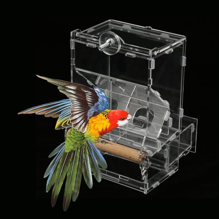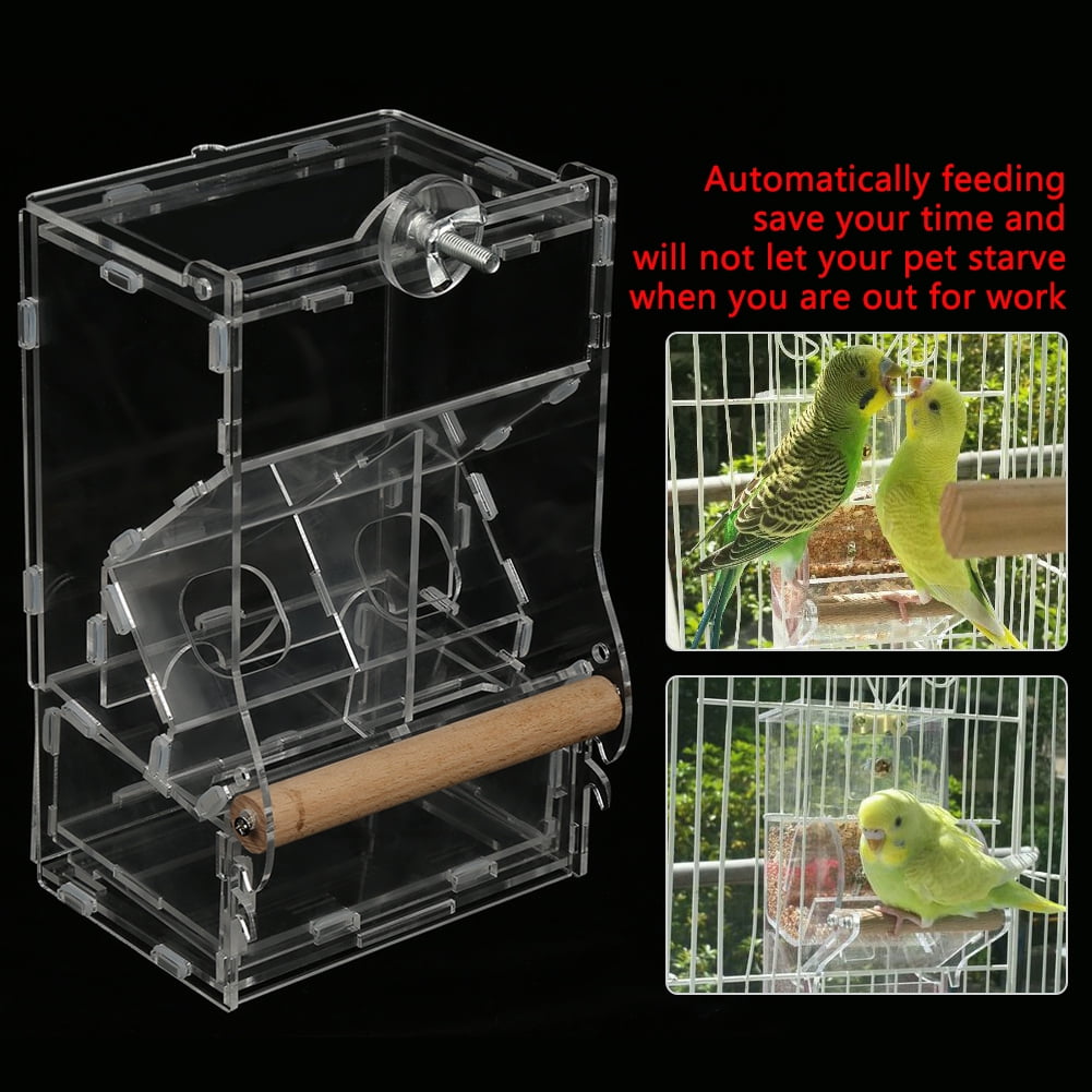 Amazon Com Automatic Bird Seed Feeder With Perch Free Install Acrylic Transparent Parrot Foraging Feeders Cage Accessorie In 2020 Bird Seed Feeders Bird Seed Conure