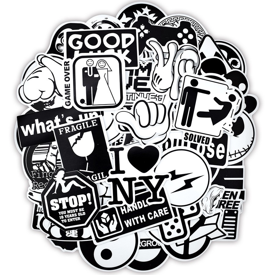100 Pcs Cool Transparent Black And White Sticker For Car Laptop