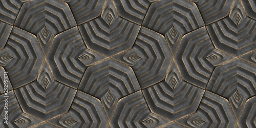 3d Wallpaper Of Tiles In The Form Of Black Scale With Worn Golden