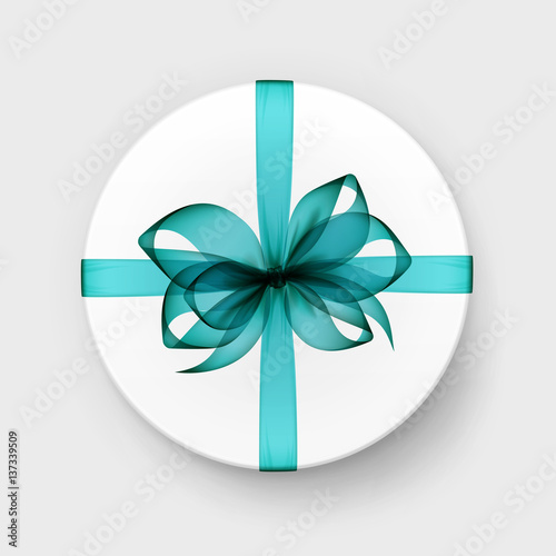 Vector White Round Gift Box With Transparent Light Blue Turquoise
