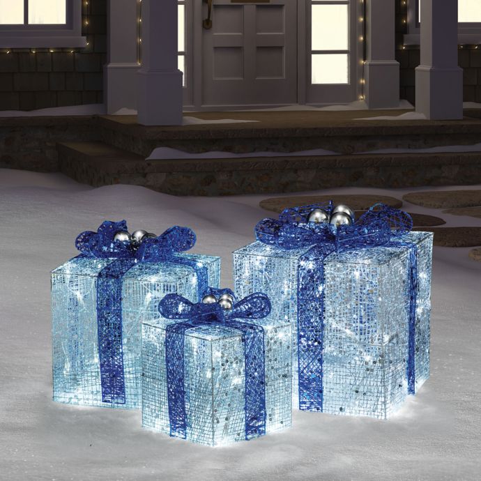 Hanukkah Gift Boxes With Lights In Blue White Bed Bath Beyond