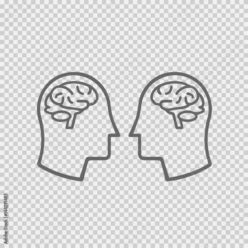 Two Heads With Brain Icon Simple Isolated Silhouette Symbol Head
