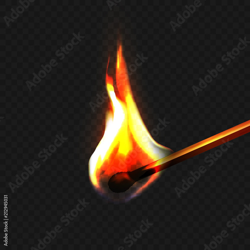 Stock Vector Illustration Realistic Burning Match Isolated On A