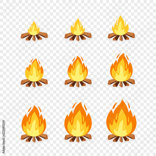Set Of Camp Fire Sprites For Animation Vector Cartoon