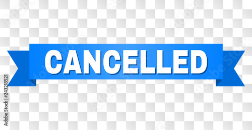 Cancelled Text On A Ribbon Designed With White Title And Blue