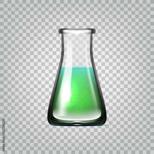 Chemical Laboratory Transparent Flask With Green Vector Image