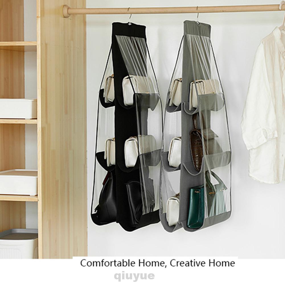 8 Pocket Hanging Handbag Organizer For Wardrobe Closet Transparent
