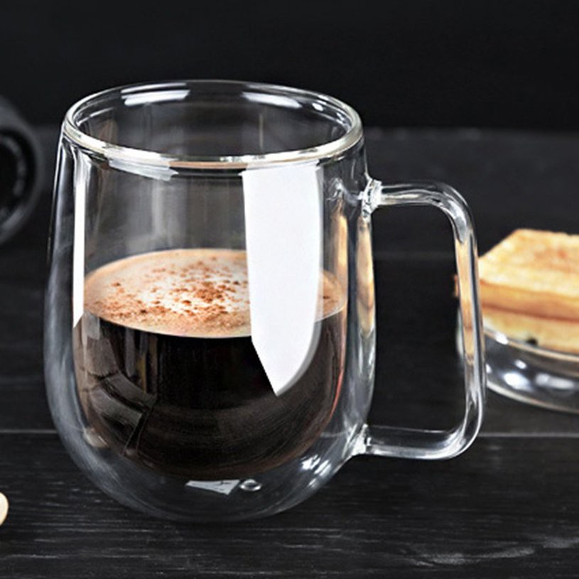 Qoo10 250ml 450ml Double Wall Coffee Mug Cup Transparent Milk