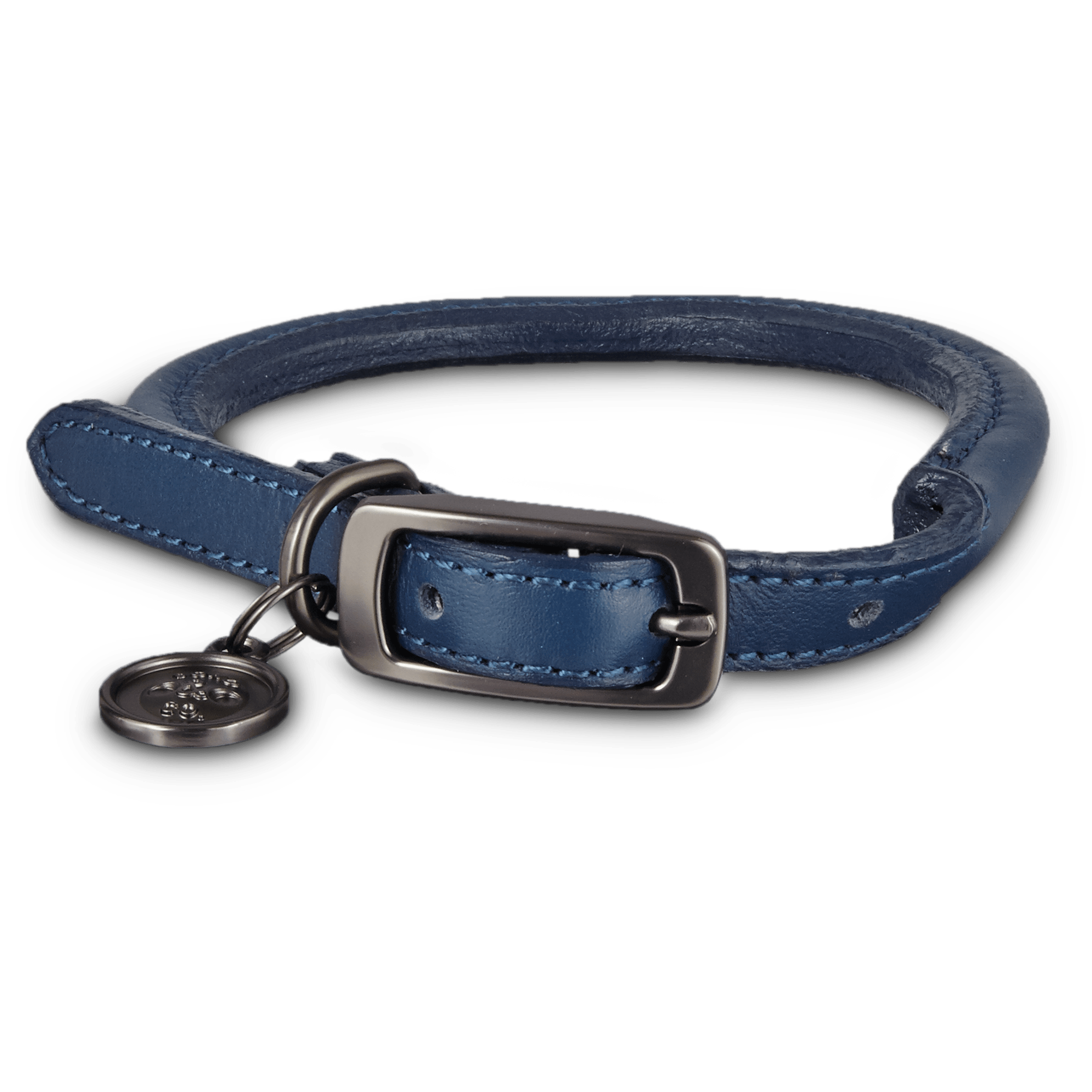 Bond Co Blue Rolled Leather Dog Collar For Neck Sizes 18 21