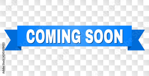 Coming Soon Text On A Ribbon Designed With White Title And Blue