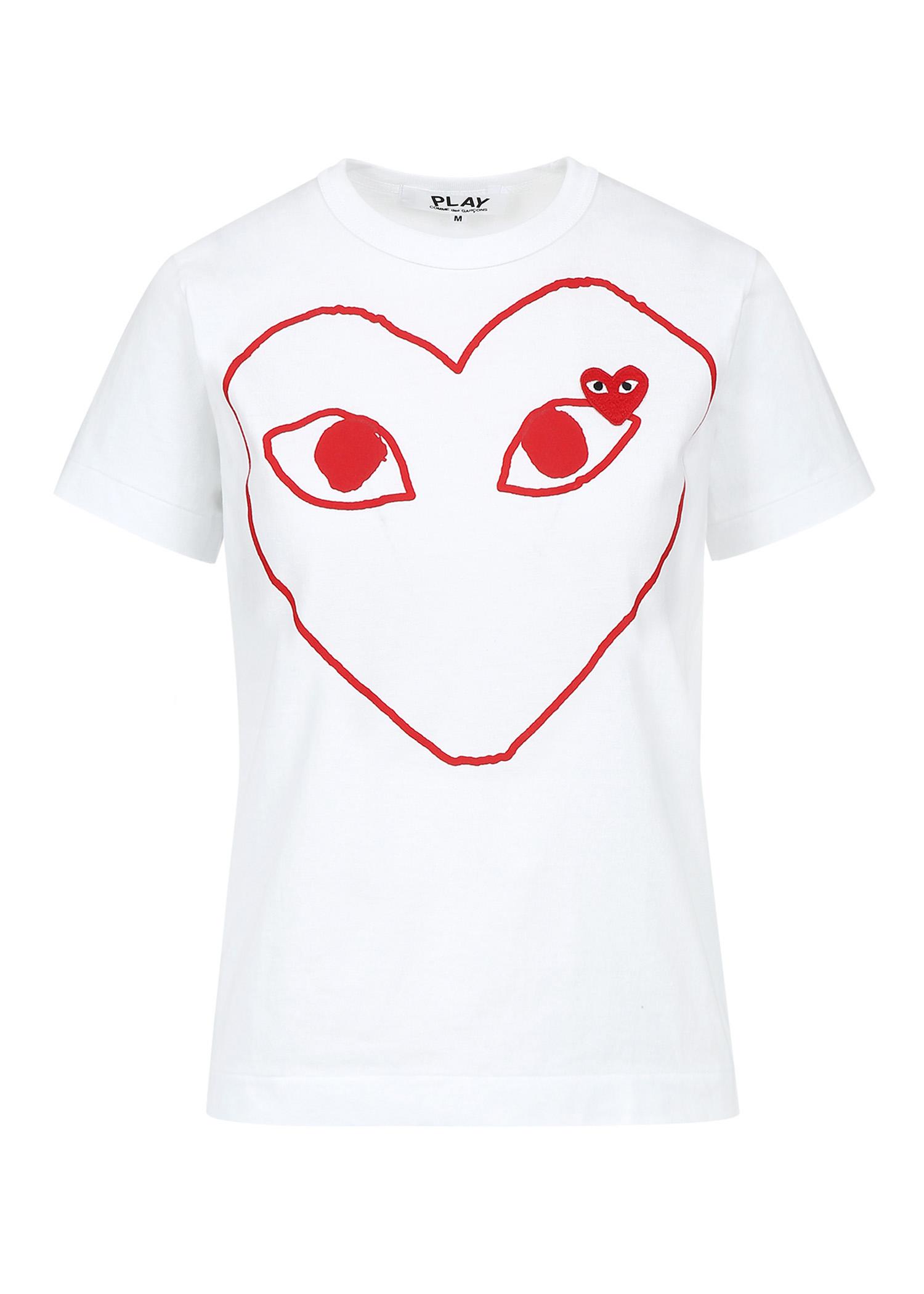 Comme Des Garcons Play Red Heart Outline Print T Shirt In White