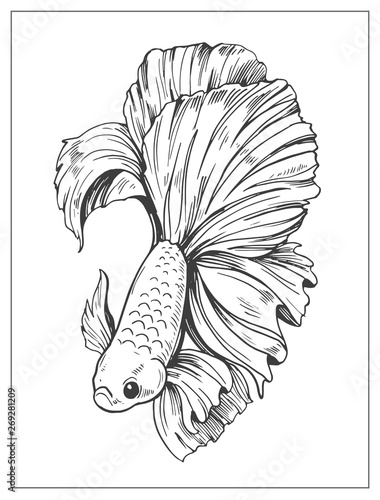 Sketch Of Gold Fish Outline With Transparent Background Hand