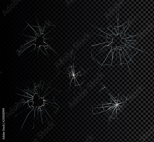 Vector Illustration Set Of Broken Glass Effects Set With Cracks