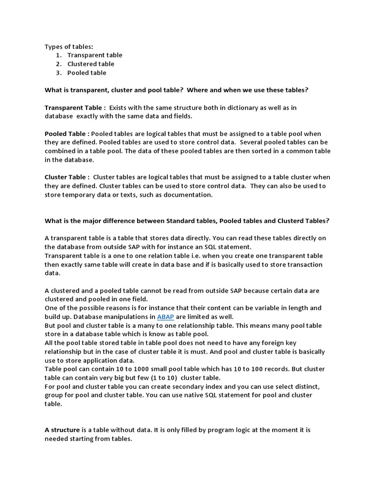 Sap Doc Types Of Tables In Sap Database Index Databases Free
