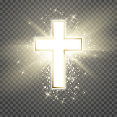 Shining Gold Cross Isolated On Transparent Background Riligious