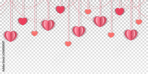 Pink Paper Cut Love Hearts Modern Trendy Flyer Concept On