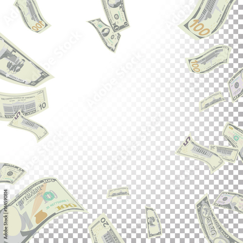 Dollar Frame Banknotes Falling On Transparent Background Dollars