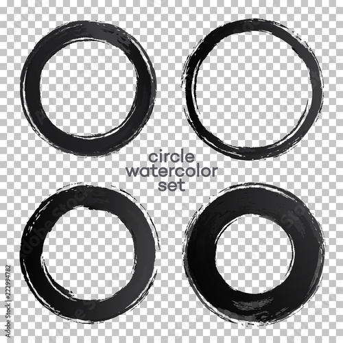 Vector Hand Draw Watercolor Texture Ring Brush Strokes Set Black