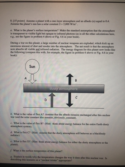 8 135 Points Assume A Planet With A One Layer At Chegg Com