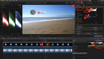 You can change the size of the brush and add and subtract areas of the selection. It works in the same manner when you want to cut a figure out of a relatively white background. In the same way that you can export a tif image from photoshop with a transparent background to include into a video you use the animation codec to export a mov to use in final cut for animated graphics like lower 3rds. In this simplified example i have a spinning moon with a black sky background resized and super imposed over the sky at the beach. Final cut displays numbers at the top of the viewer indicating how much the image has been cropped.