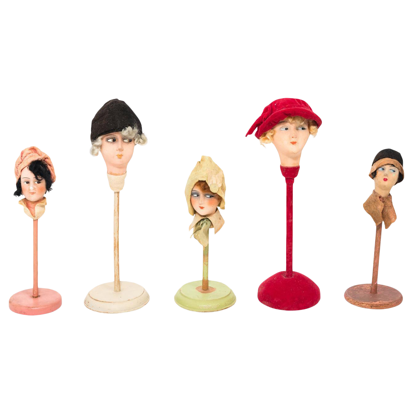 Set Of Five Papier Mache Flapper Hat Stands Chairish