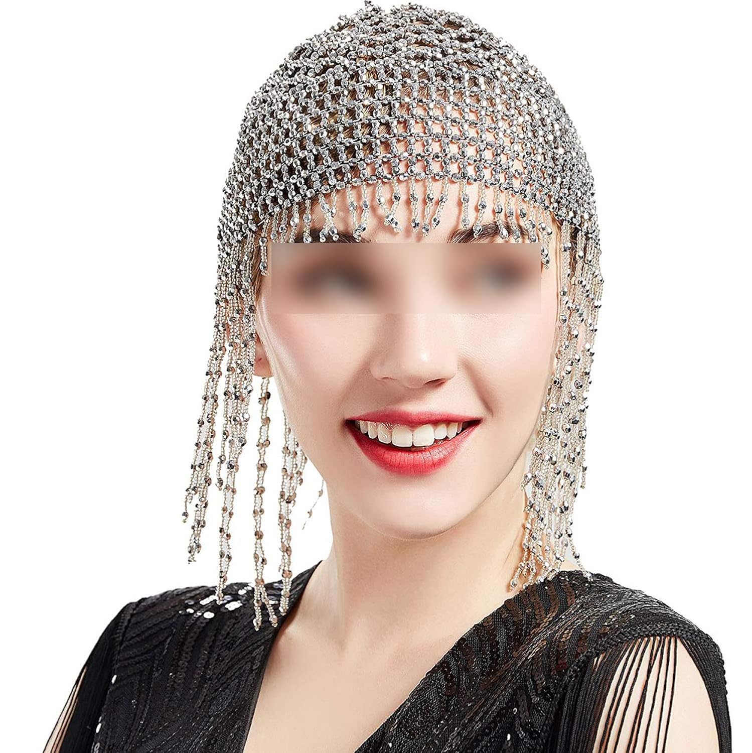 Amazon Com 1920s Beaded Cap Headpiece Roaring 20s Beaded Flapper