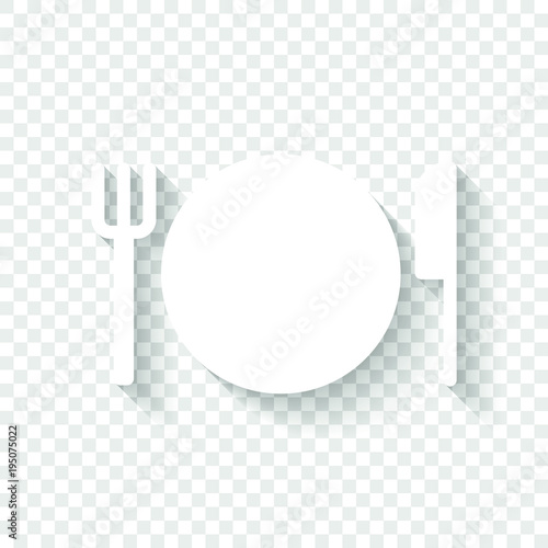 Cutlery Plate Fork And Knife Icon White Icon With Shadow On
