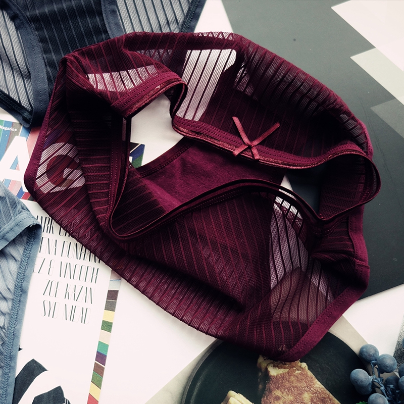 Panties Feminine Sense Seamless Mesh Gauze Transparent Lace Hollow Fun Ultra Thin Red Low Waist Bag Hip Ladies