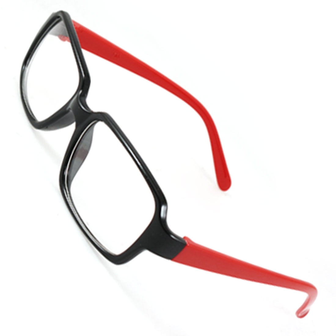 Black Full Frame Red Plastic Arms Single Bridge Plano Glasses