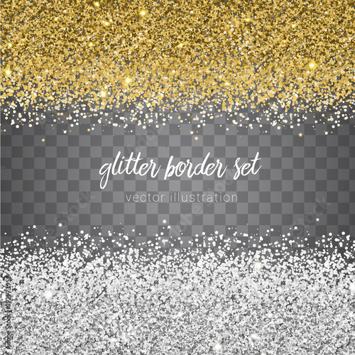 Vector Shiny Gold And Silver Glitter Border Set Isolated On