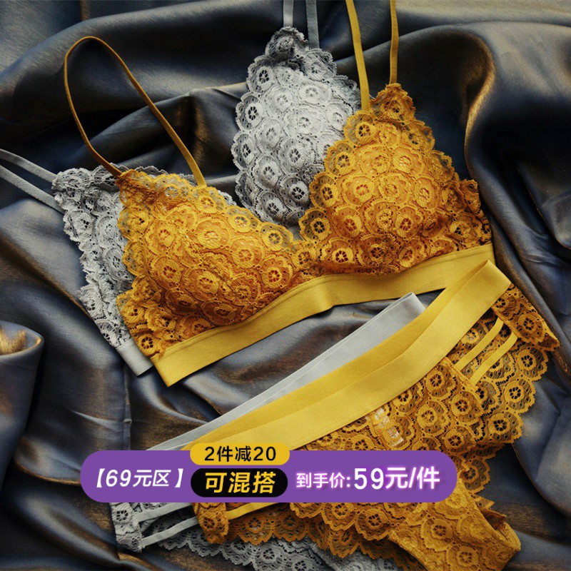 Sexy Transparent Ultra Thin Hollow Triangle Cup Lace Bra Set