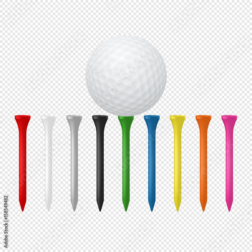 Illustration Of Sports Set Realistic Golf Ball With Tees Design