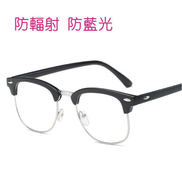 Retro Half Frame Blue Film Radiation Glasses Clear Lens Eyewear