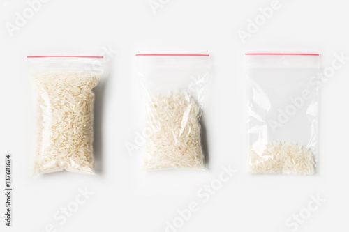 Set Of Three Empty Half And Full Plastic Transparent Zipper Bag