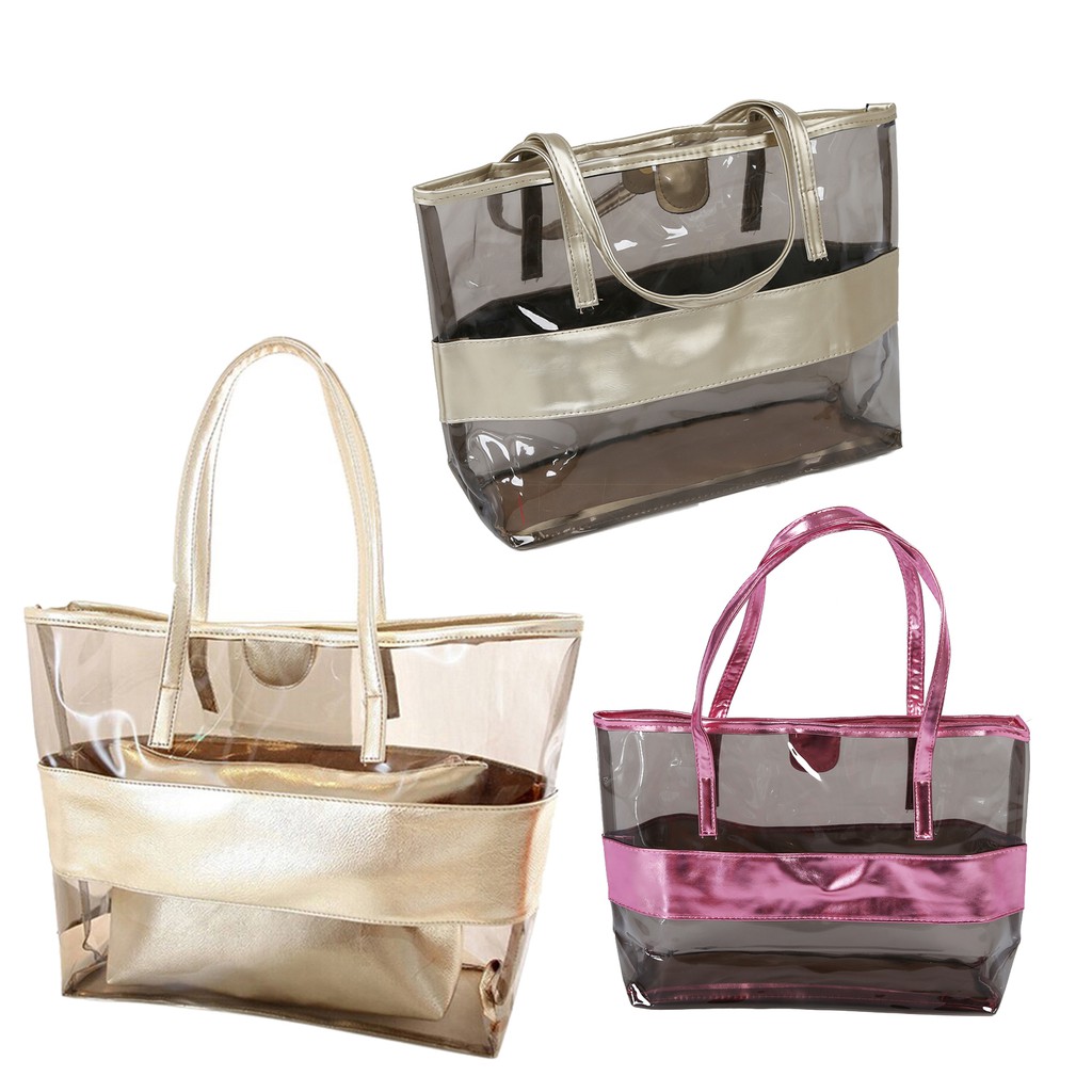 Waterproof Half Transparent Hand Bag Pvc Beach Bag And Polyester