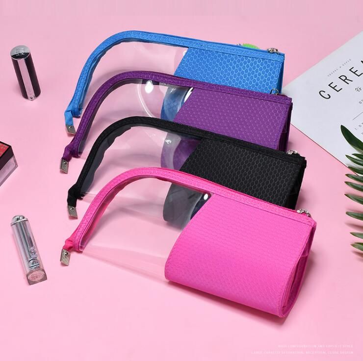 Half Clear Cosmetic Bag Pouch Pvc Transparent Makeup Waterproof