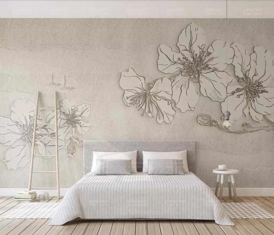 Cjsir Custom Wallpaper Mural 3d Embossed Flowers Beige Texture